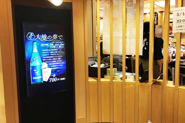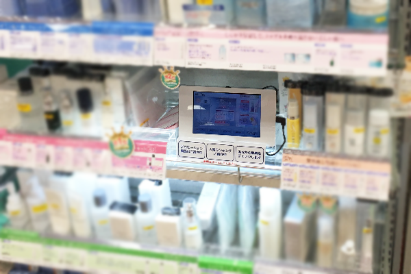 最新のデジタルポップとして商品陳列棚に常設。お客にあった商品をタッチで選択できるサイネージになります。コンテンツ更新はWi-Fiを使い、インターネットでの更新を実現しております。また、タッチログを収集し、マーケティングにも活用しております。
