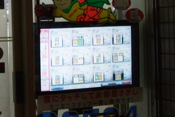 インターネットで閲覧することが出来るような物件情報を、店頭の窓ガラス越しにディスプレイを設置し、表示しています。