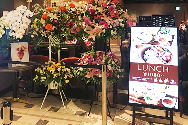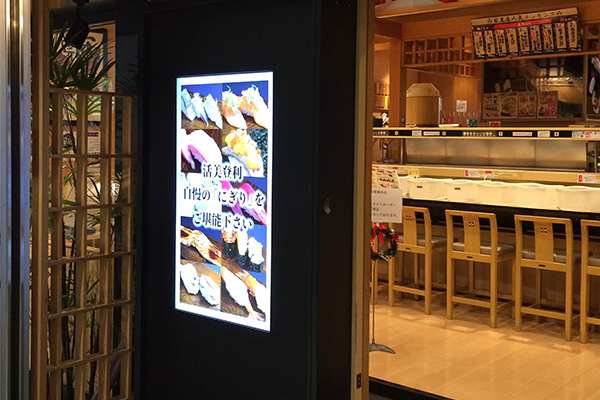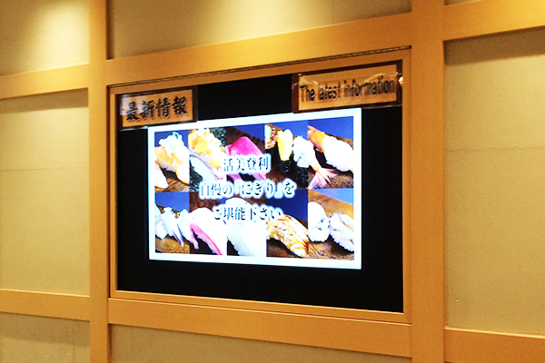 ディスプレイをエントランスに設置し、お越しにくるお客様にインパクトのある映像を提供しております。
